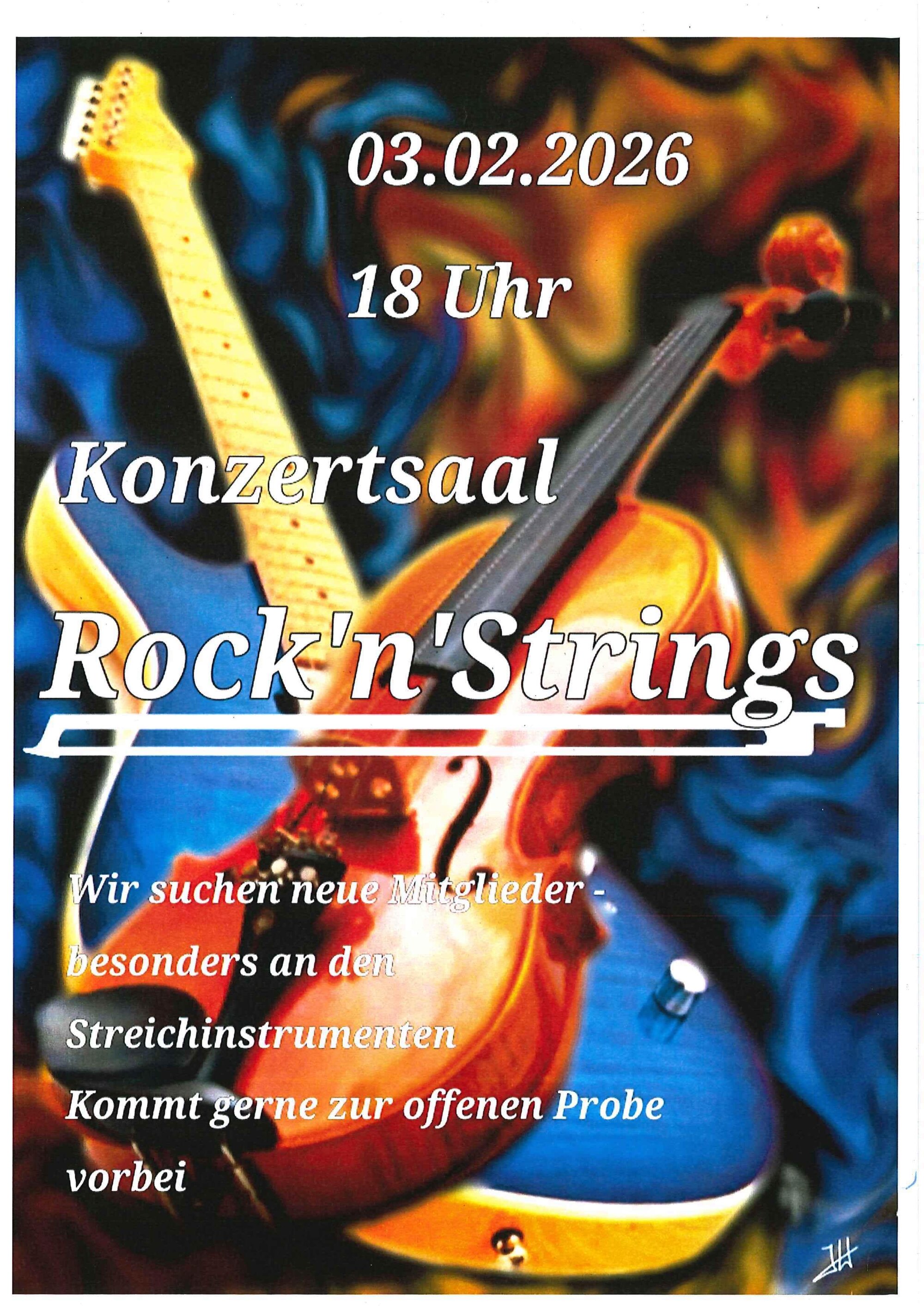 Die Streicherband “Rock'n'Strings” der Städtischen Musikschule sucht neue Mitglieder, die Lust haben, gemeinsam Pop- und Rocksongs zu spielen und die perfekte Mischung aus Streichinstrumenten und Popsounds zu genießen. Am Dienstag, den 03.02.2026 findet deshalb eine offene Probe statt, zu der jede:r Interessierte dazustoßen kann. Besonders gesucht werden neue Mitglieder für die Streichergruppe, angeleitet von Christiane Korn.