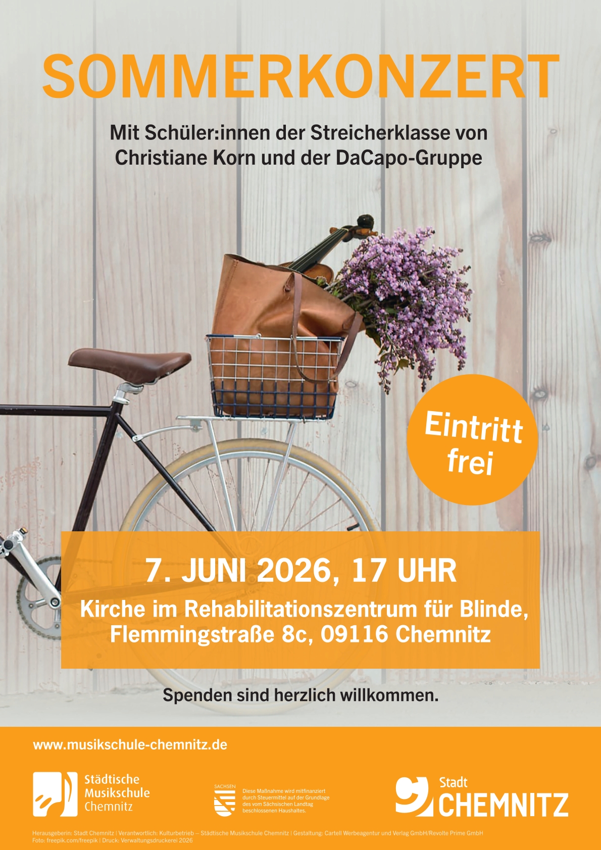 Die Schüler:innen der Streicherklasse von Christiane Korn sowie die Gruppe “DaCapo” spielen am 07. Juni in der Kirche des Rehabilitationszentrums für Blinde ein Sommerkonzert! Ab 17:00 Uhr kann man den Streicher-Klängen lauschen. Der Eintritt ist frei, Spenden sind herzlich willkommen.